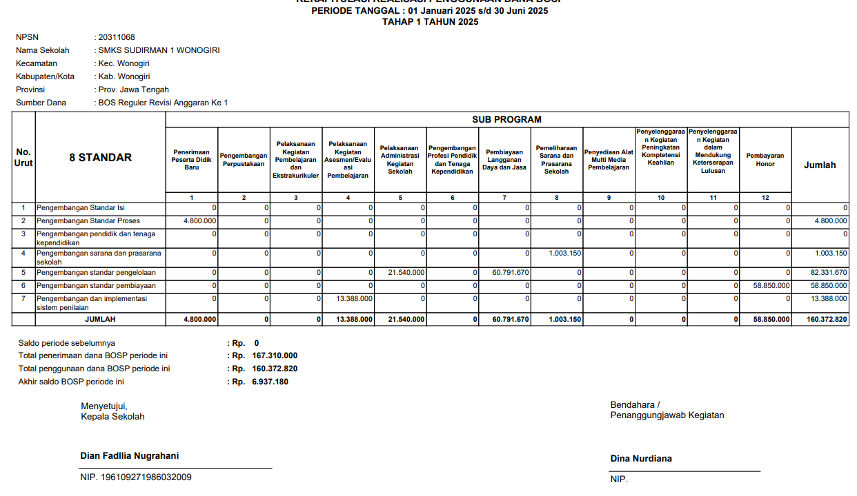 Laporan Rekapitulasi Realisasi Penggunaan Dana BOSP