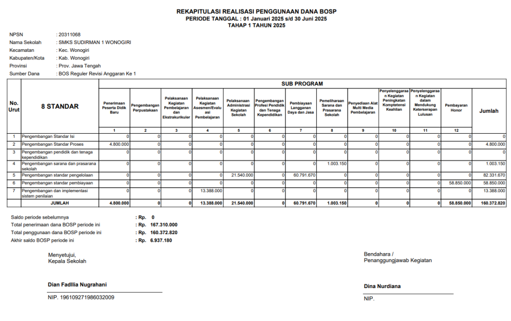 Laporan Rekapitulasi Realisasi Penggunaan Dana BOSP